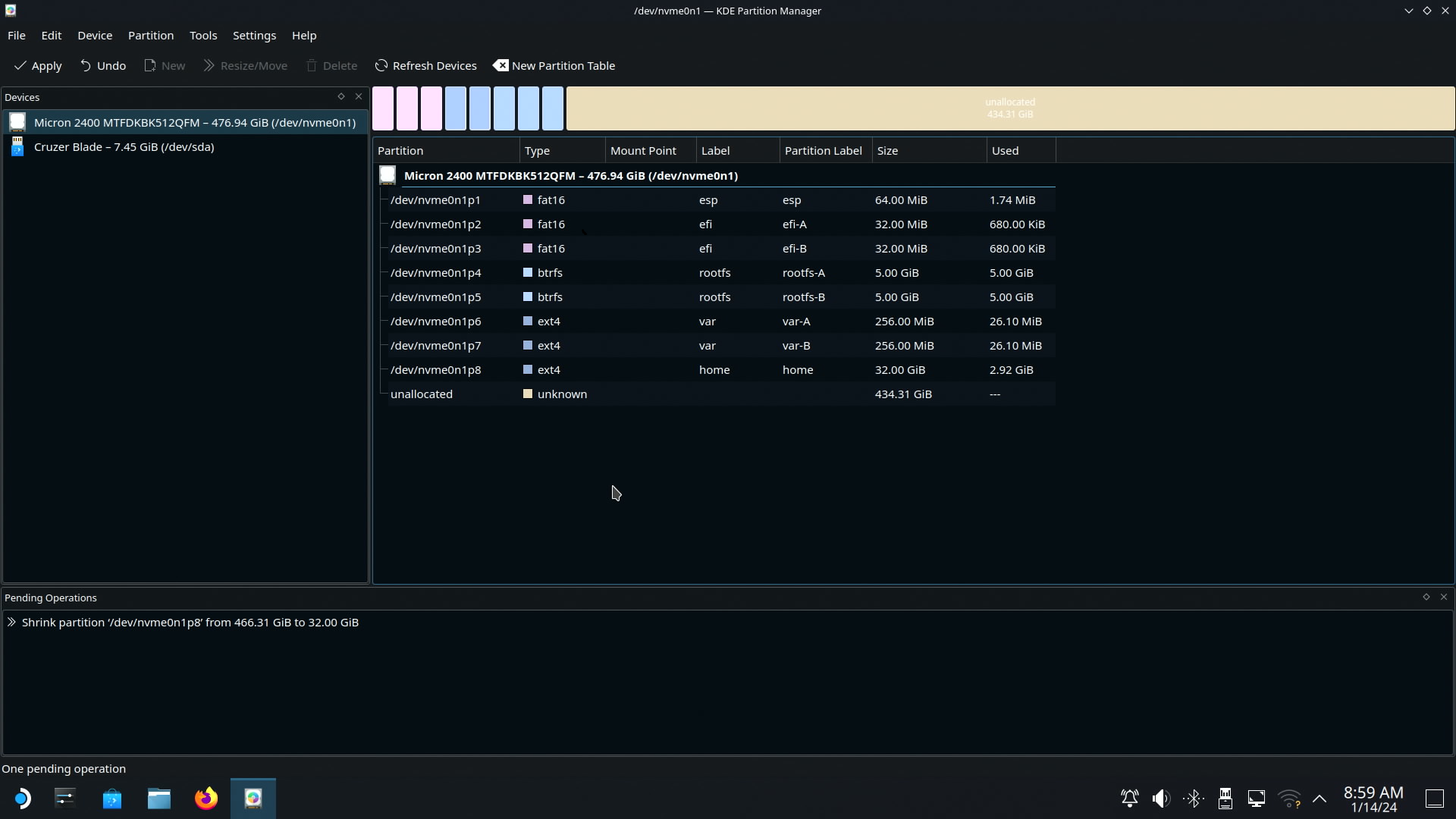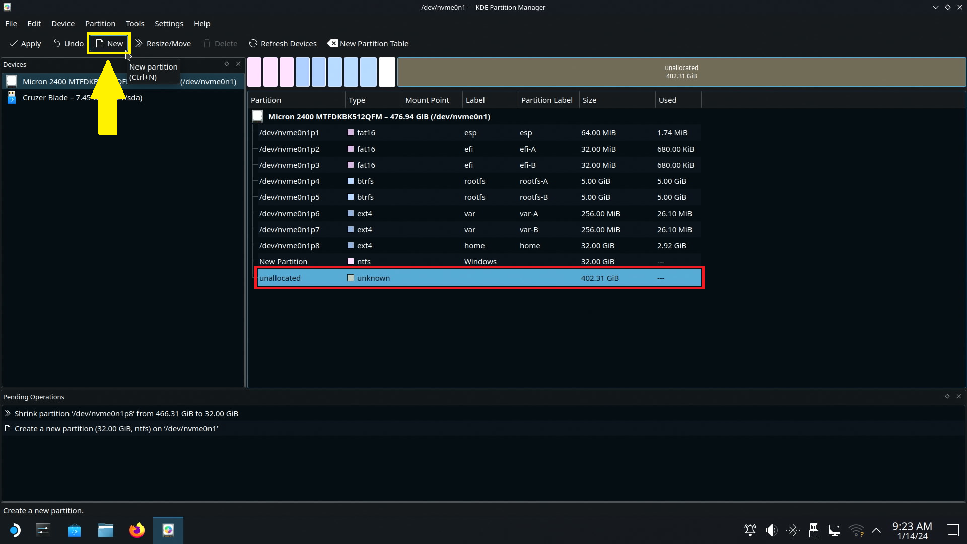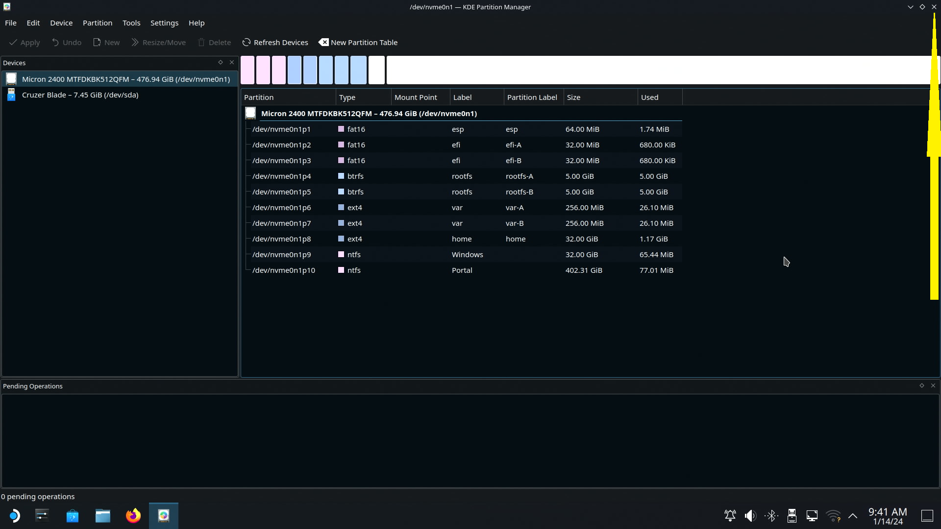 그대로 Apply Pending Operations 버튼을 클릭합니다. (노란색 박스)
