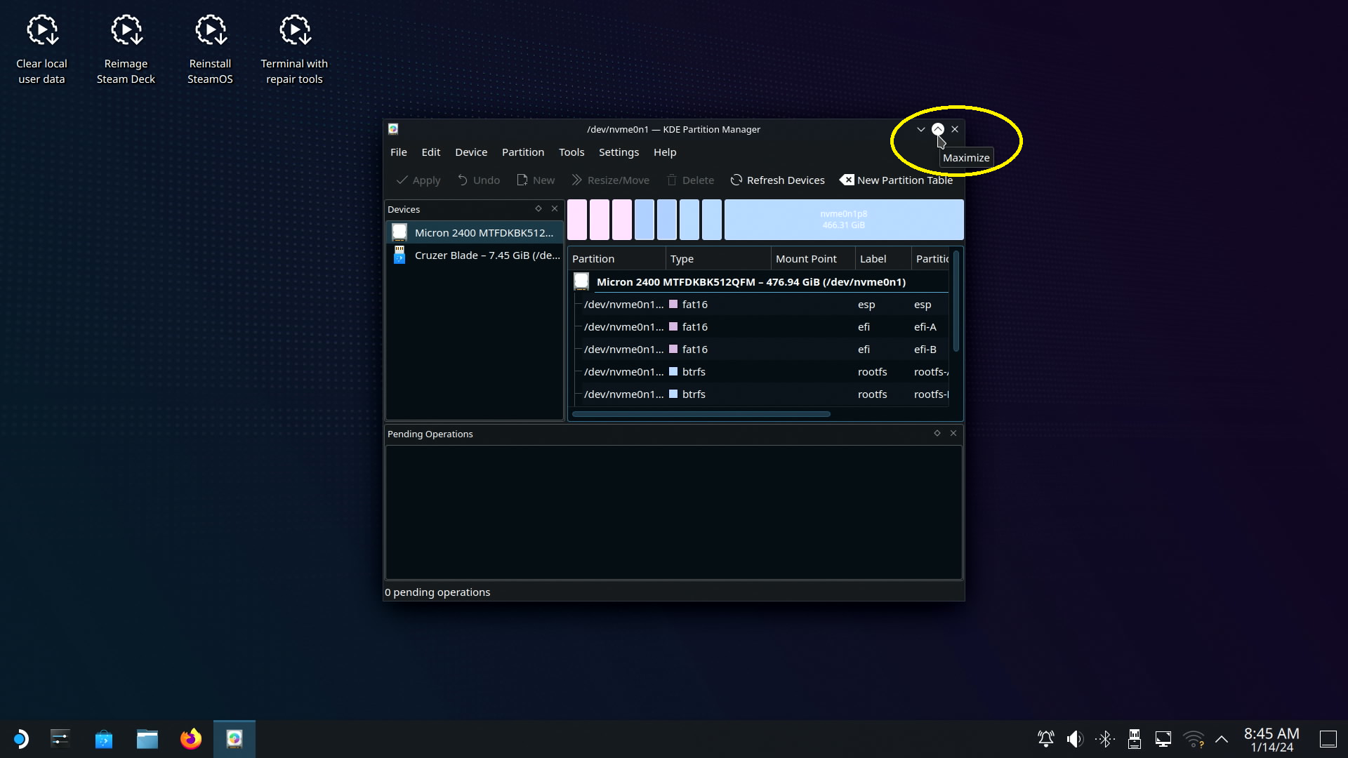 4장, 스팀덱에 USB1을 연결해서 스팀OS 파티션 나누기