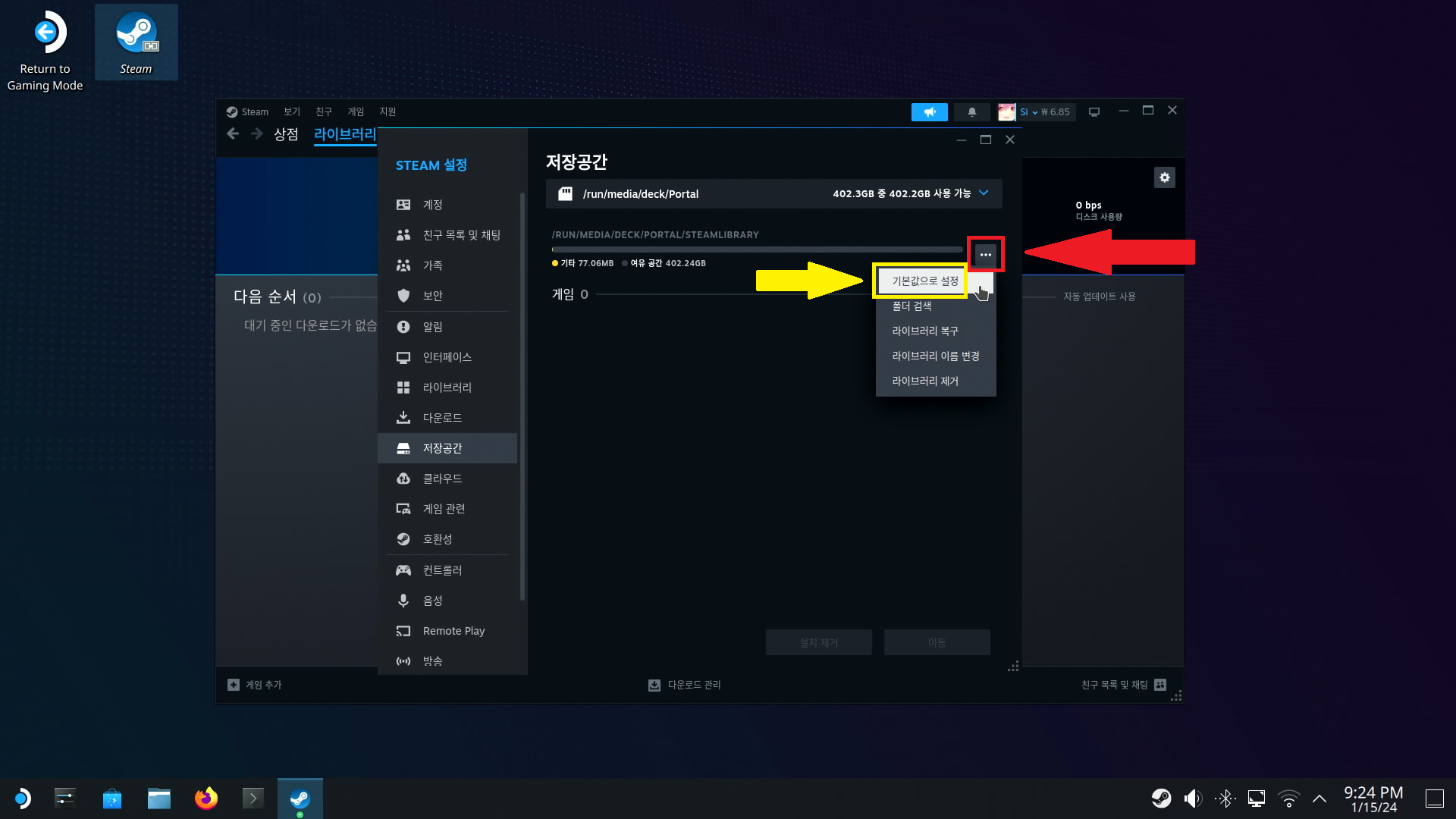 다시 스팀덱을 데스크톱 모드로 전환합니다.