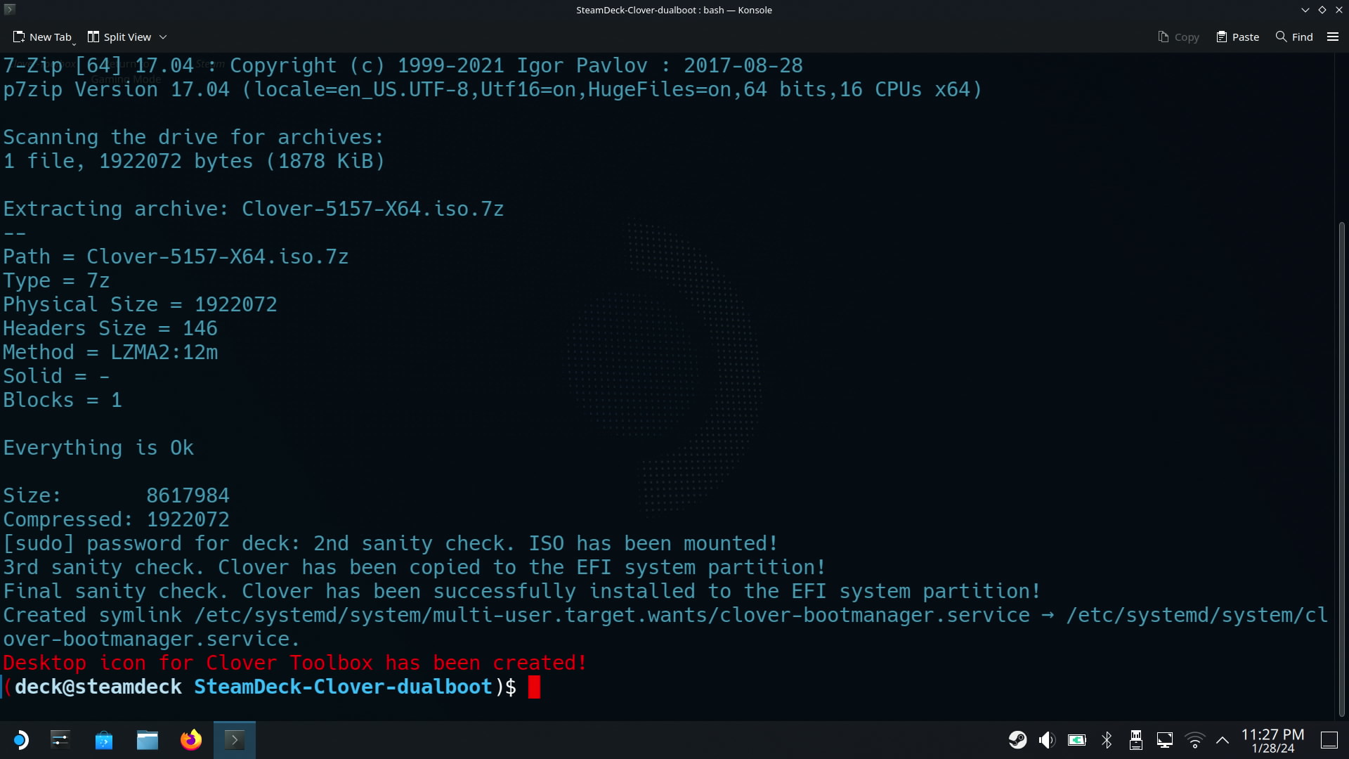 SteamDeck-Clover-dualboot 폴더에 들어왔다는 뜻입니다.