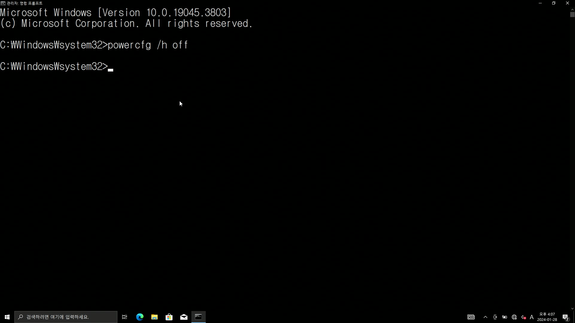 한줄 띄어지고 다시 입력할 수 있게 되면 최대절전모드가 비활성화 되었습니다.