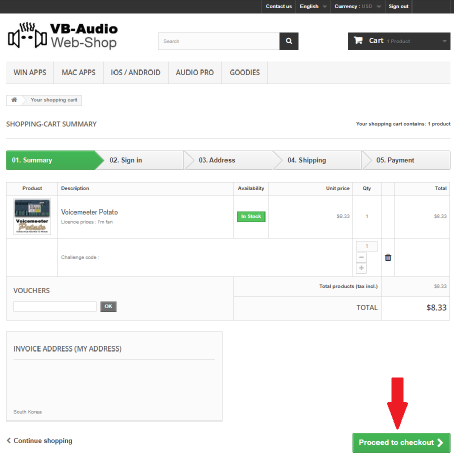 항목을 체크하고 Proceed to checkout 버튼을 눌러 결제를 하러 갑시다.
