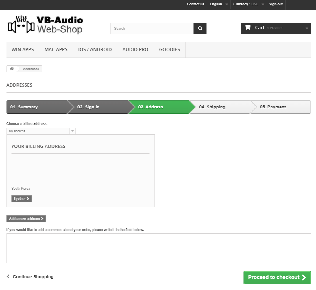 주소를 적어주고 계속 Proceed to checkout을 눌러 다음 절차로 넘어갑니다.