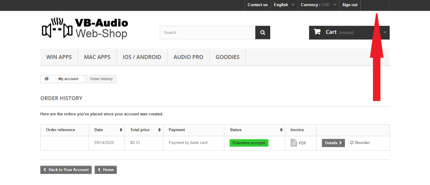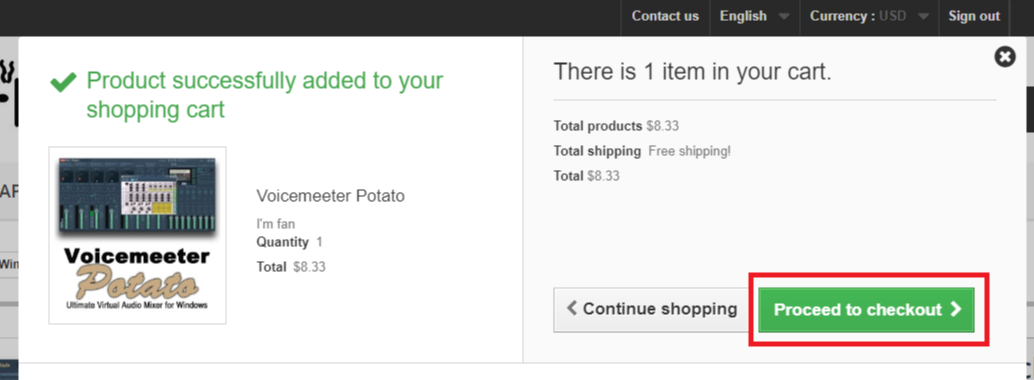 Return to Shop 버튼을 눌러 VB오디오 사이트로 돌아가줍니다.