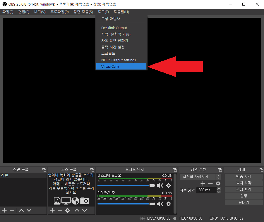 상단의 도구 -> Virtual Cam을 클릭합니다.