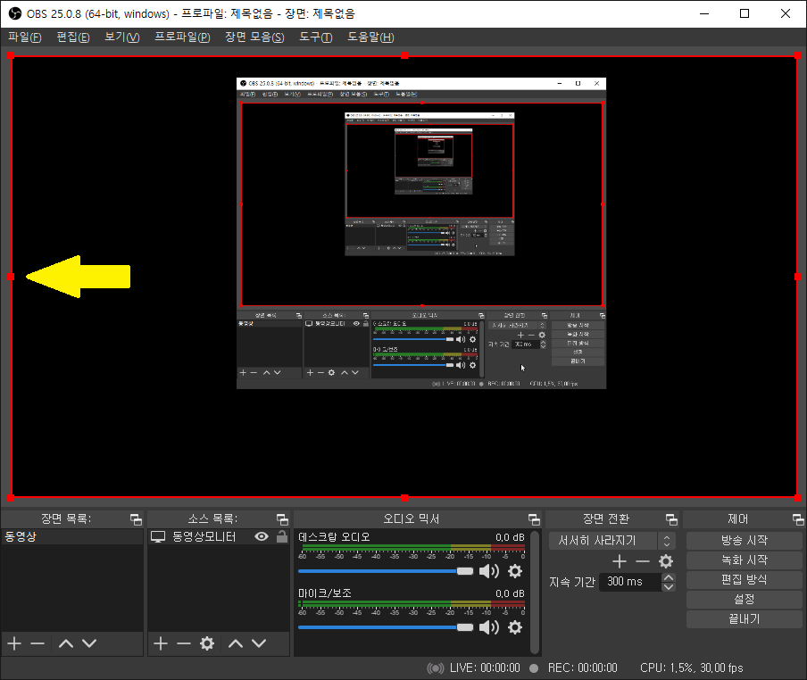 이제 OBS의 세부 사항을 세팅하도록 하겠습니다.