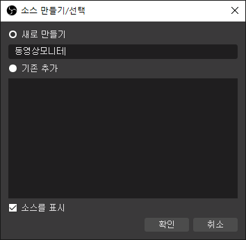 소스의 이름은 같은 장면 하위 다른 소스들의 이름과 같을 수 없습니다.