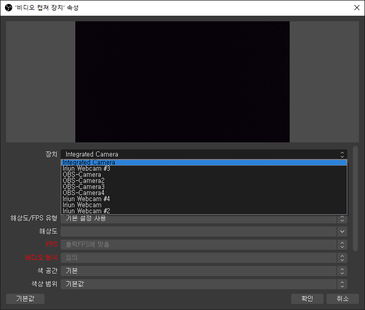 웹캠이 잘 보이는지 확인 후 확인을 눌러 웹캠 장치 추가