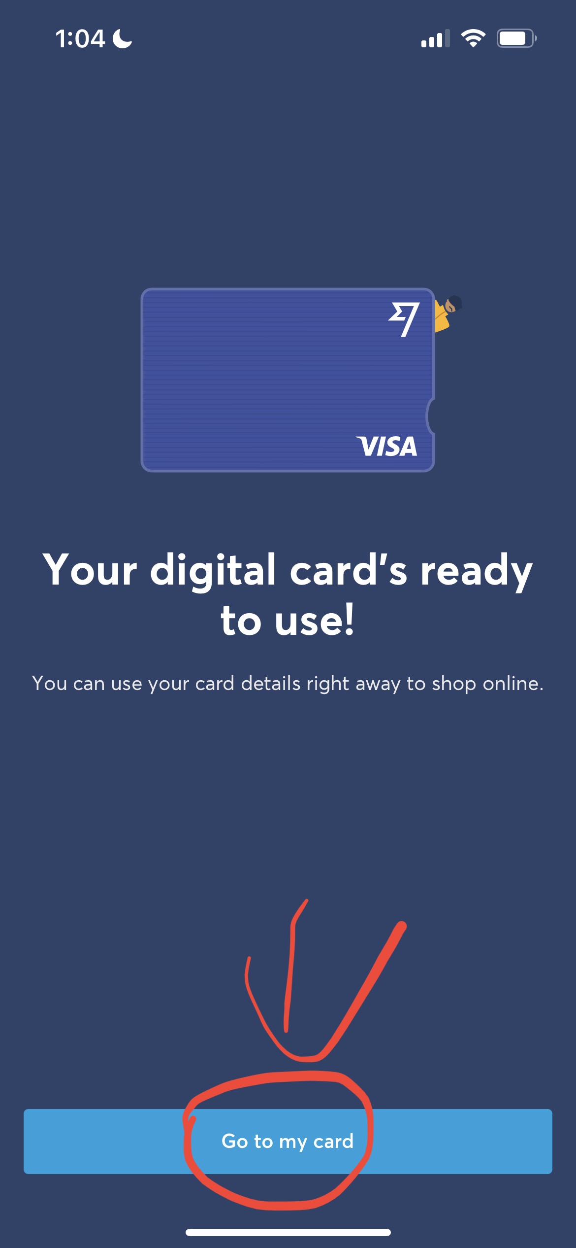 Go to my card를 터치해 완료합니다.