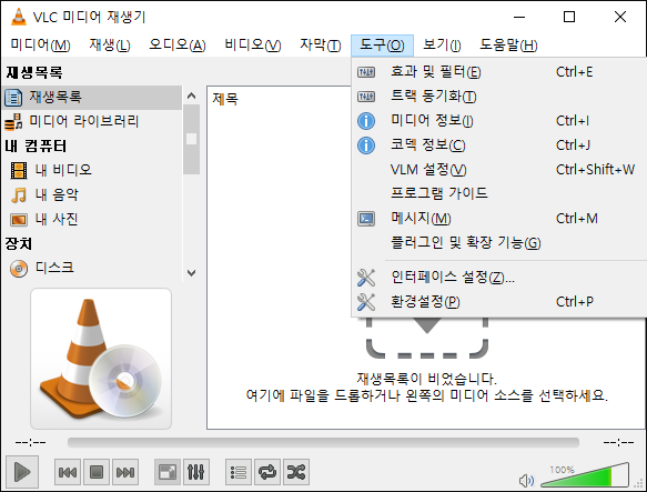 아래 화면이 보이면 VLC가 잘 깔린 것입니다.