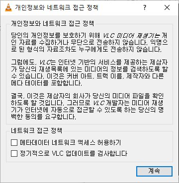 정기적으로 VLC 업데이트를 검사합니다 <- 이 항목은 해제합니다.