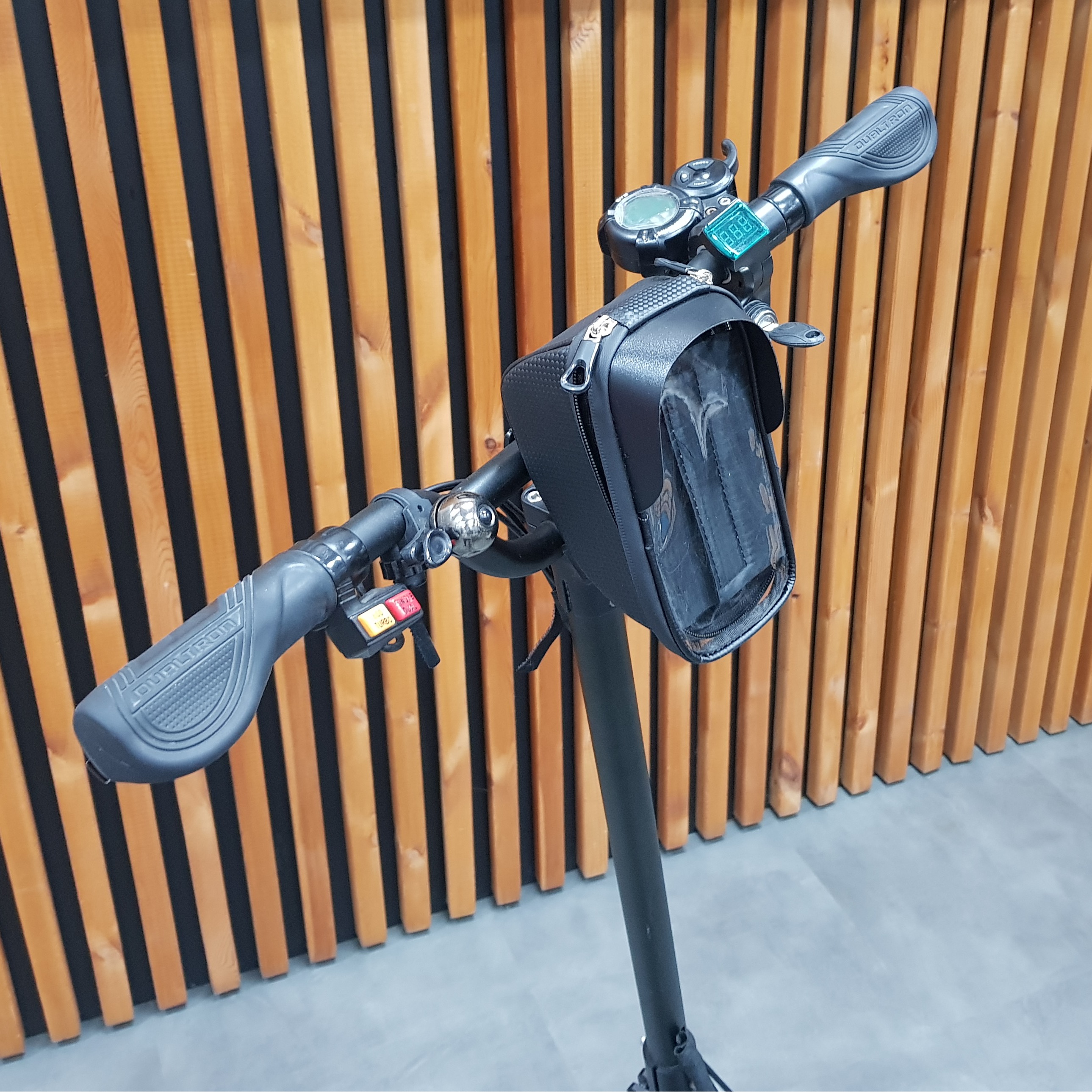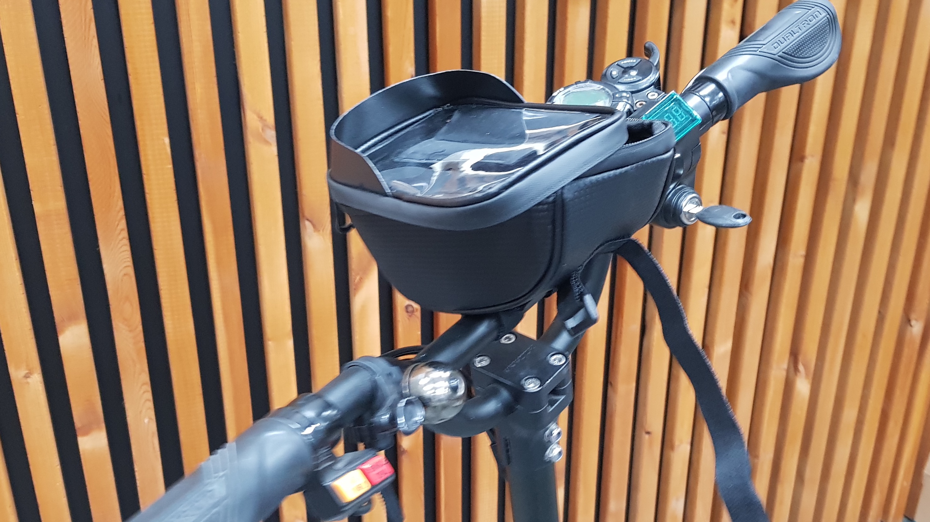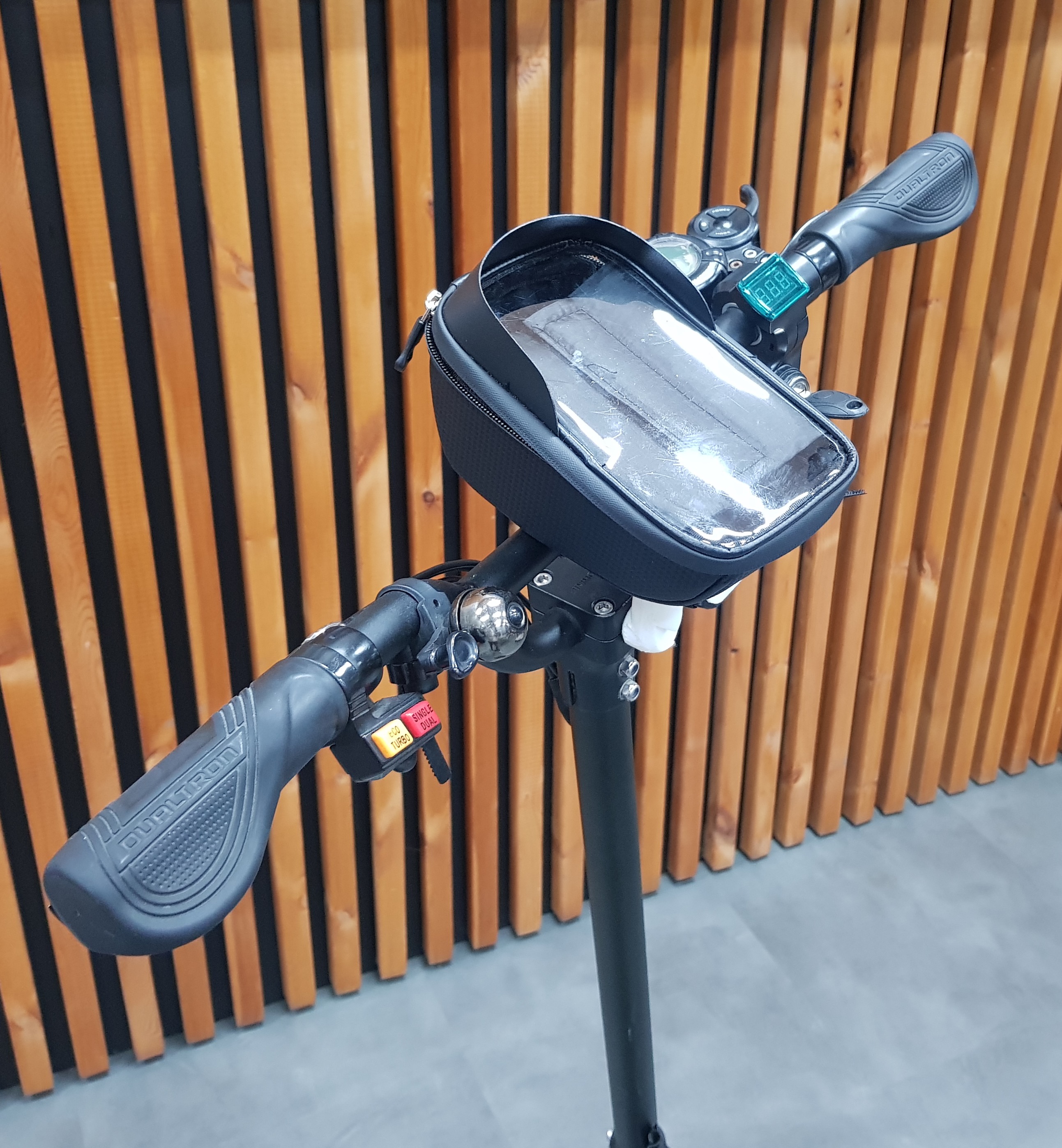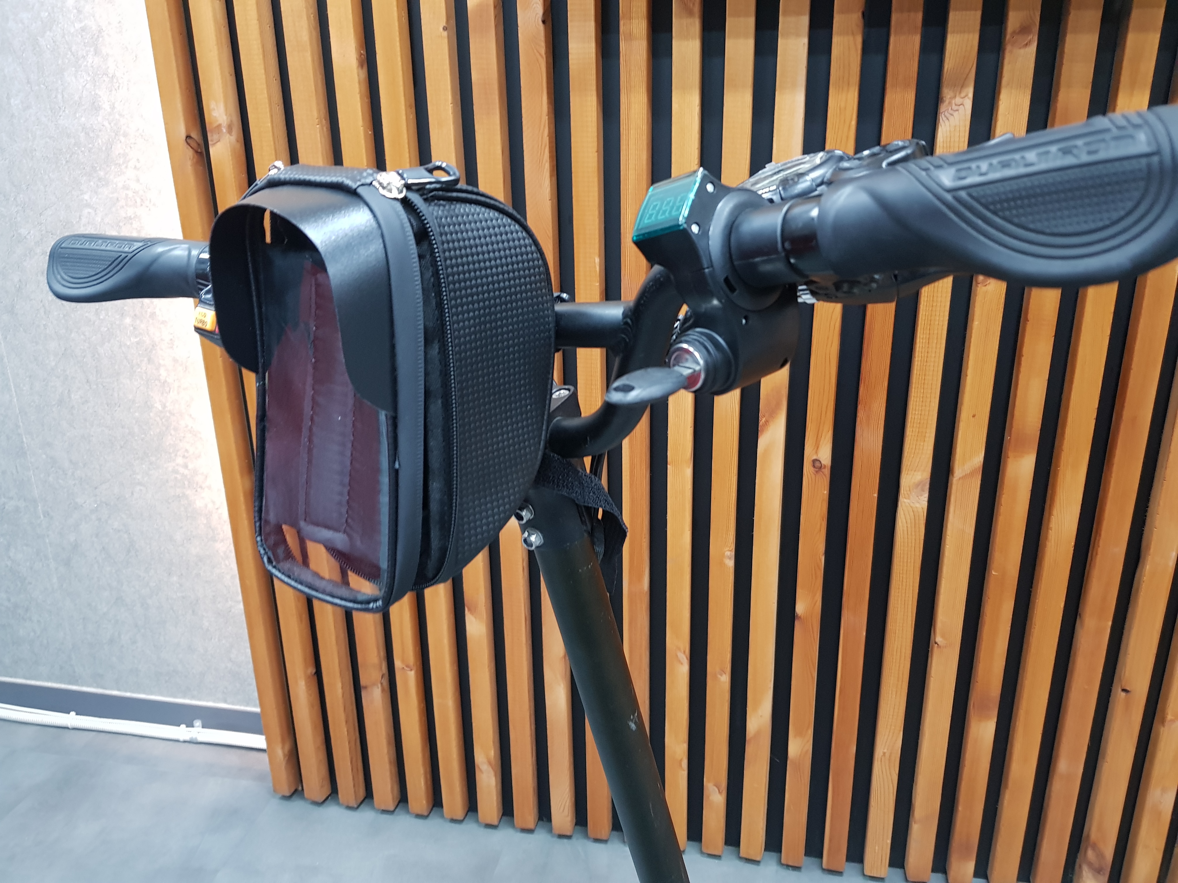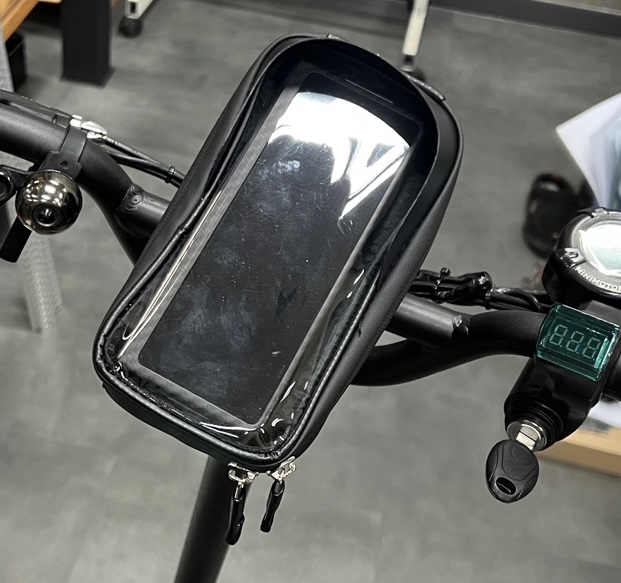 킥보드에 자전거용 휴대폰 거치 파우치를 만들고 장착했습니다.